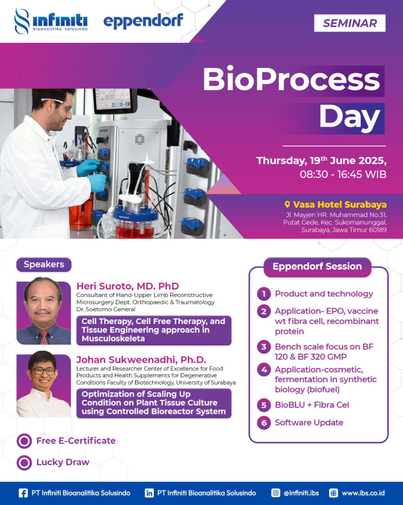 Topic: Biomanufacturing of fish cells using Eppendorf BioFlo system for alternative protein applications - Dr. Cynthia Retna Sartika, M.Si. (Director of PT Prodia StemCell Indonesia)