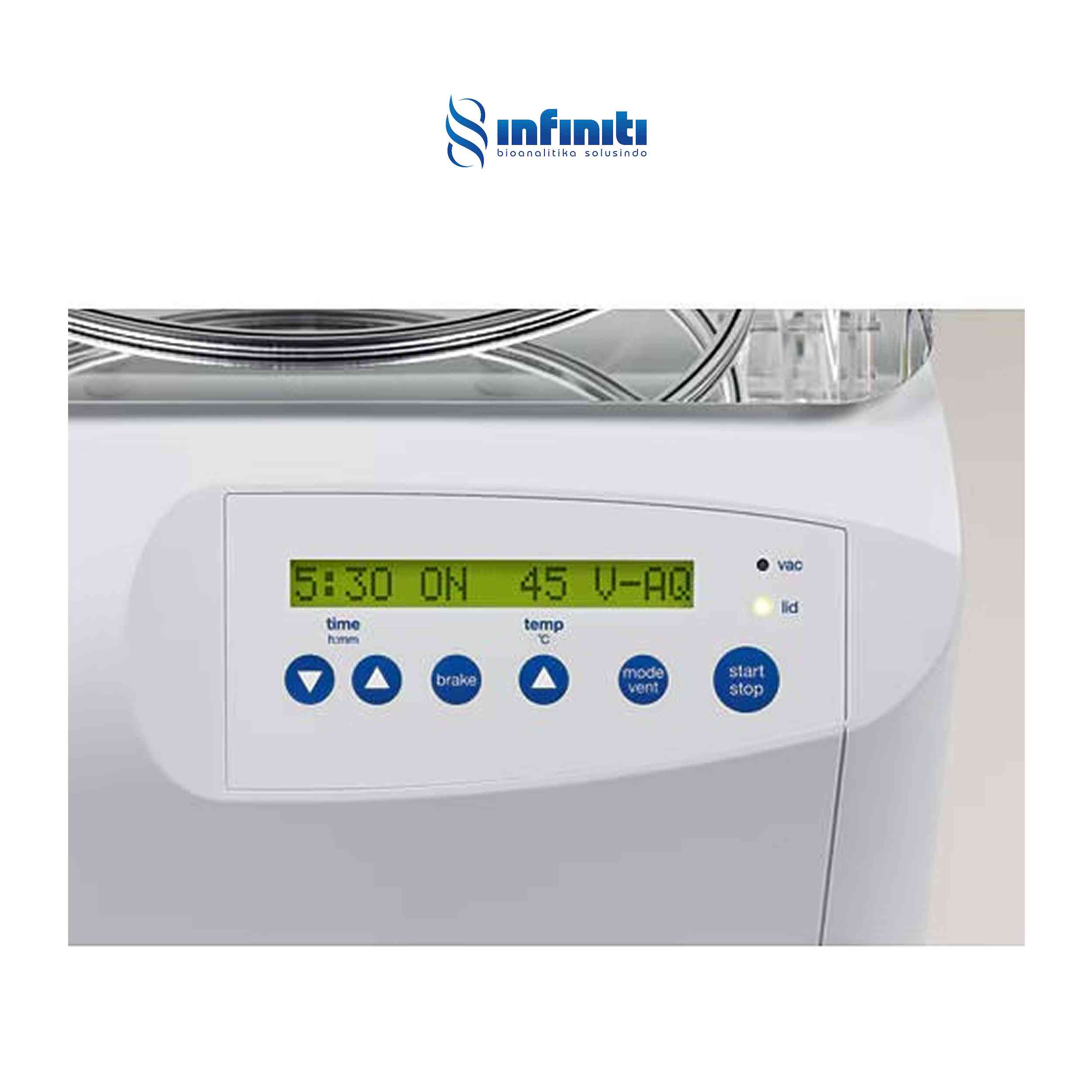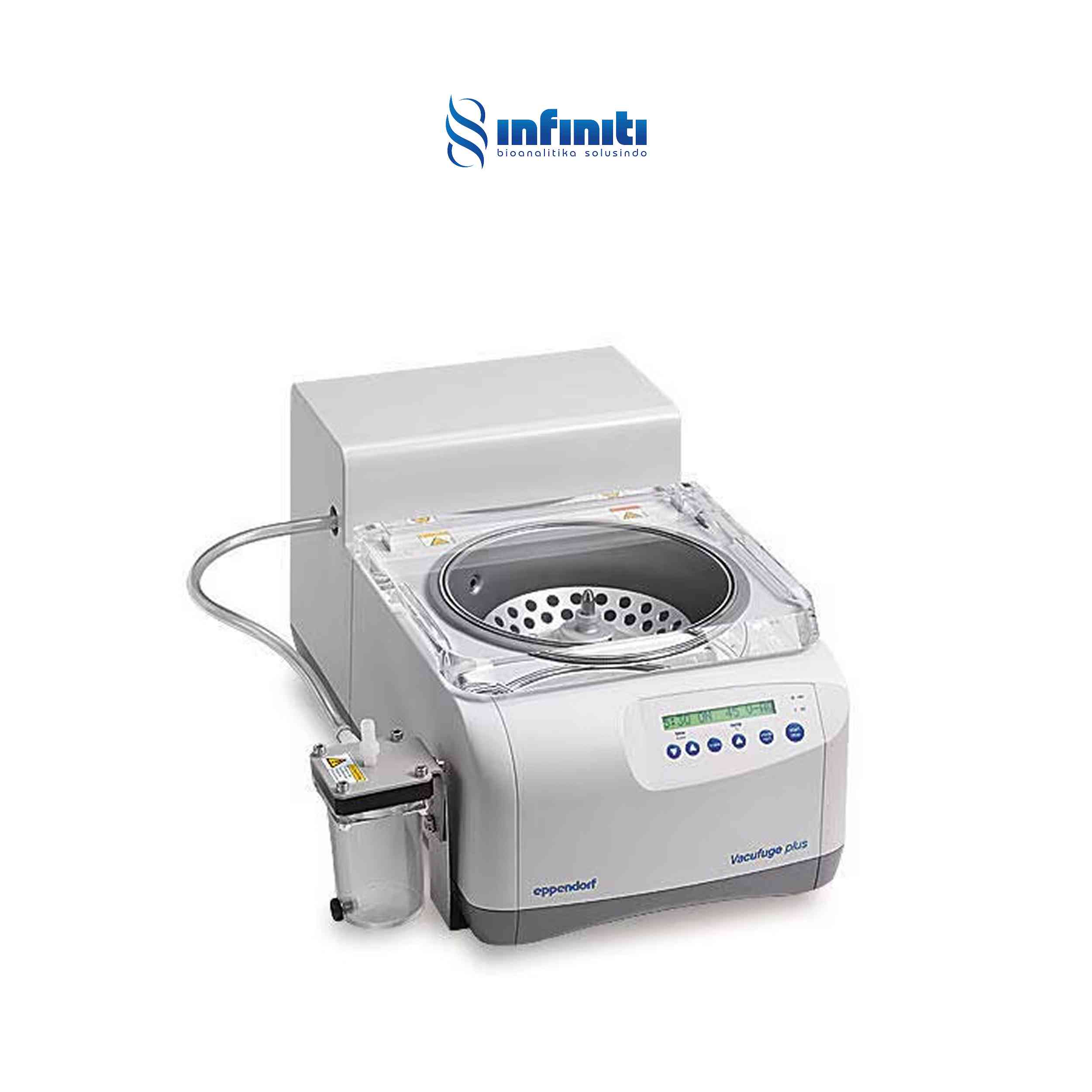 Eppendorf Concentrator plus adalah konsentrator sentrifugasi vakum yang dirancang untuk konsentrasi sampel secara cepat, efisien, dan tetap lembut, termasuk DNA, RNA, nukleotida, protein, serta spesimen cair atau basah lainnya. Alat ini dilengkapi dengan teknologi pemanasan canggih dan penutup dengan lapisan kimia yang memberikan ketahanan tinggi terhadap asam maupun pelarut organik. Desainnya ergonomis dan intuitif sehingga pas ditempatkan di meja laboratorium, serta tersedia dalam tiga konfigurasi, yaitu model dasar untuk penggunaan dengan pompa vakum eksternal dan dua sistem lengkap dengan pompa vakum diafragma PTFE bebas perawatan terintegrasi, salah satunya memiliki port vakum tambahan untuk penggunaan pompa yang lebih fleksibel. Perangkat ini mendukung tiga mode operasi yaitu konsentrasi, sentrifugasi, atau pengeringan, serta empat tingkat pemanasan (suhu ruang, 30 °C, 45 °C, dan 60 °C) untuk menyesuaikan berbagai jenis sampel dengan waktu pemrosesan hingga 20 persen lebih cepat. Dengan tingkat kebisingan di bawah 50 dB, ukuran yang ringkas, hingga 15 pilihan rotor untuk tabung mulai dari 0,2 mL hingga 50 mL dan juga plat, penggerak induksi tanpa motor, serta ruang berbahan baja tahan karat yang resisten terhadap bahan kimia, alat ini memberikan performa andal dalam ruang minimal sekaligus mudah digunakan dan dirawat.